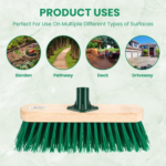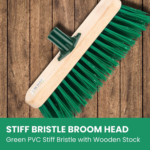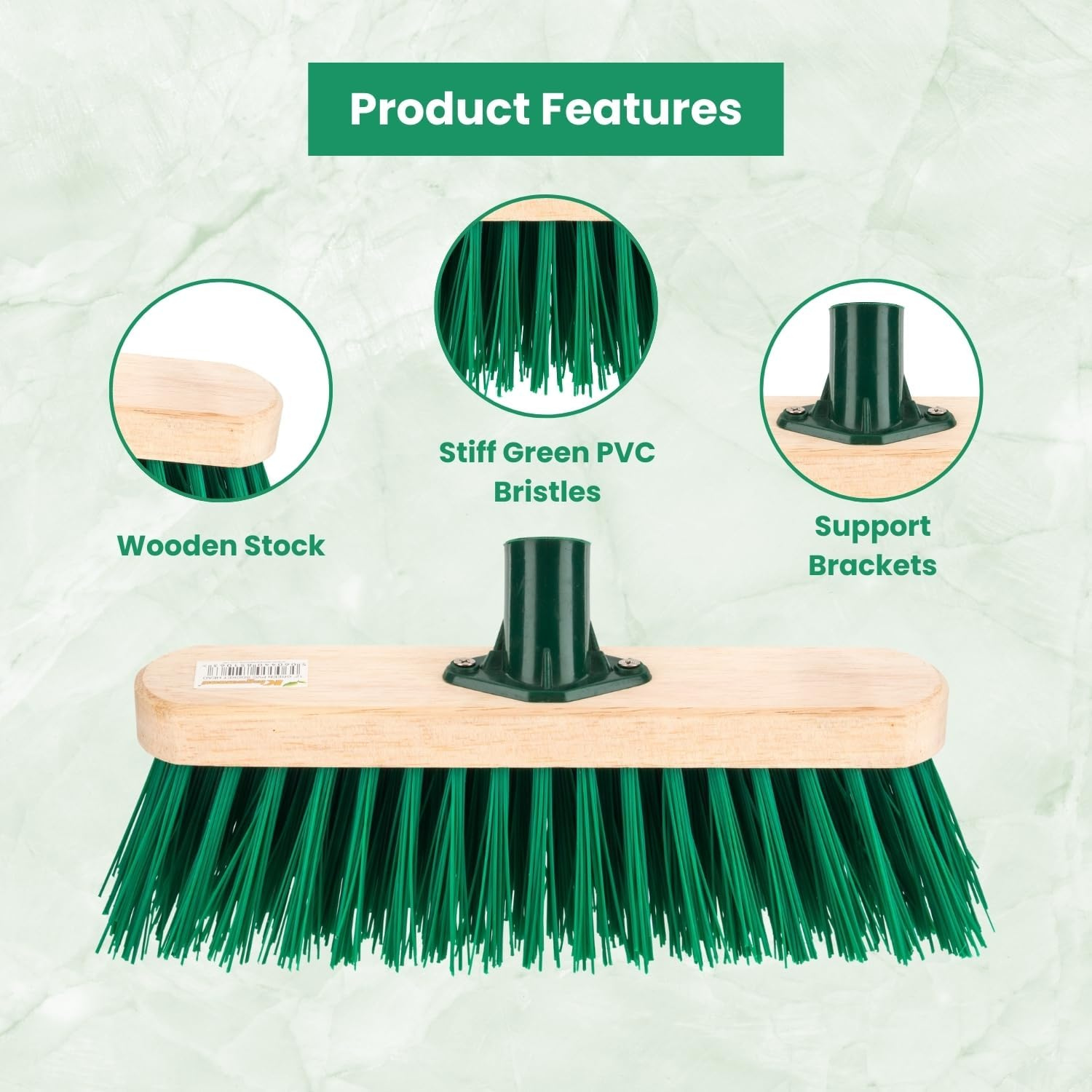 Sturdy 12-inch broom head with cream-colored PVC bristles designed for light to medium-duty cleaning. Suitable for smooth surfaces in indoor environments. Easily attachable to standard broom handles.