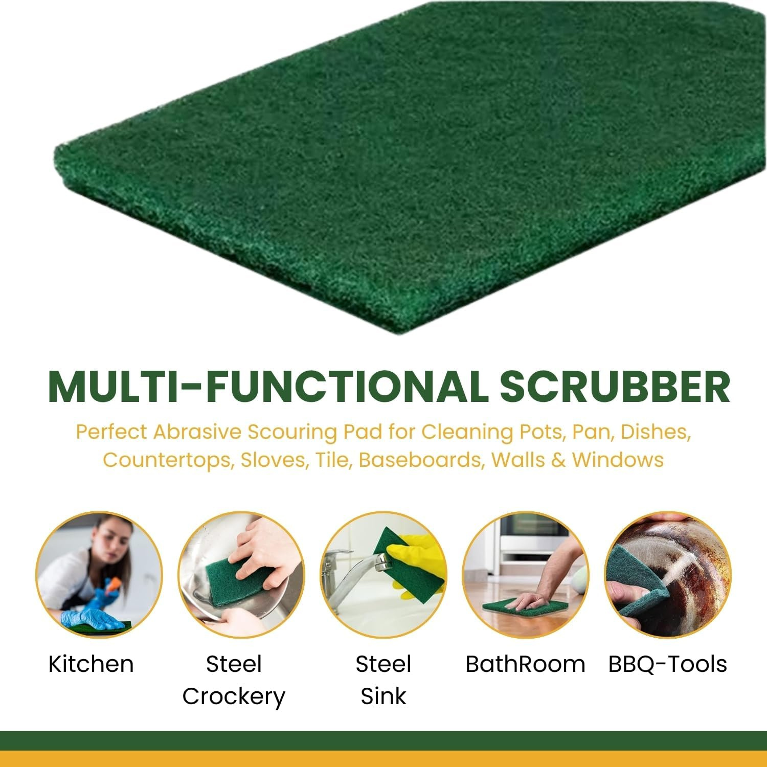 Tackle tough grime with the Acord Green Scrub Pad. Designed for heavy-duty cleaning on pots, pans, grills, and surfaces, its coarse, durable fibers remove baked-on food and stains without scratching. The convenient 10-pad pack ensures you always have a reliable scouring solution on hand.