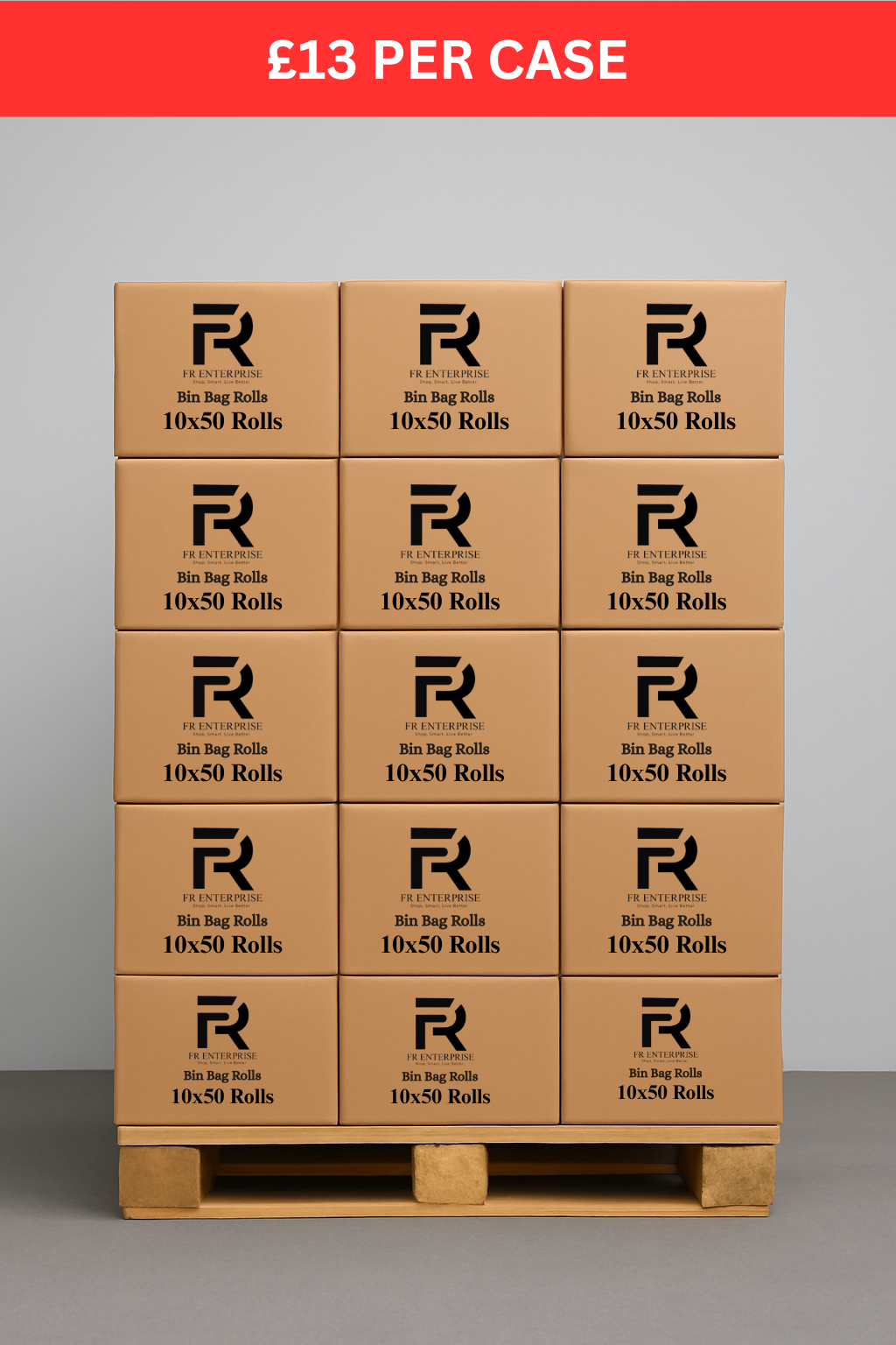 Heavy Duty 10×50 Bags – Pallet of 63 cases. Each case contains 10 rolls of 50 bags. £13 per case (£819 per pallet).