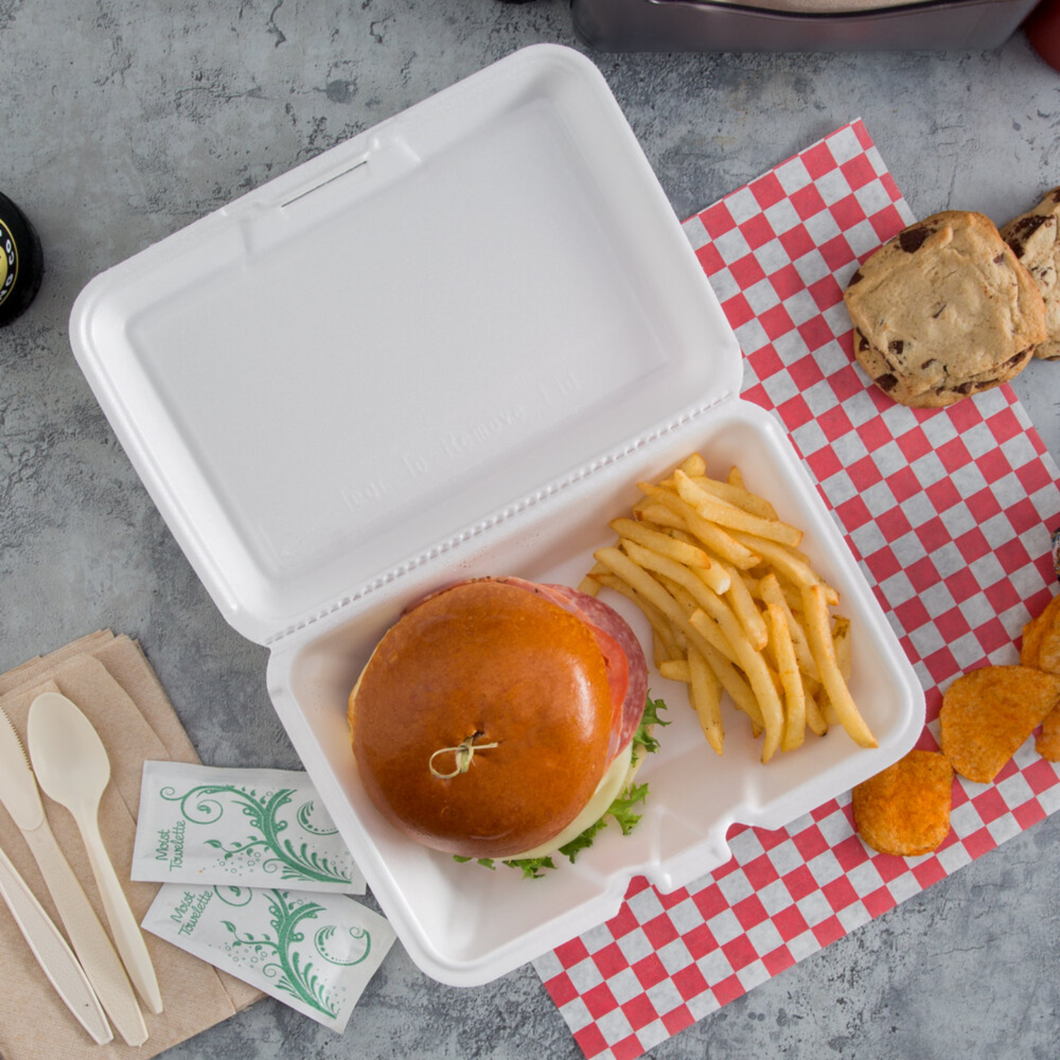 The MP9 Foam Burger Box provides reliable insulation and durability to keep your burgers warm and fresh. Perfect for takeaways and fast food service, this pack includes 2 sleeves of 125 boxes, totaling 250 pieces.