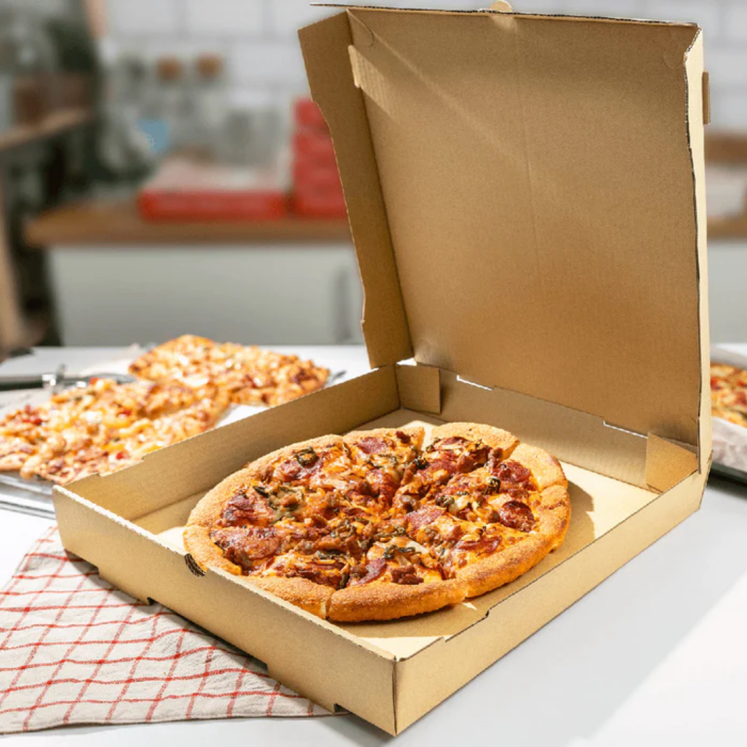 Deliver hot, fresh pizzas every time with our premium-quality plain pizza boxes. These boxes are designed to keep pizzas warm and maintain their shape during transit, ensuring your customers receive the best dining experience.