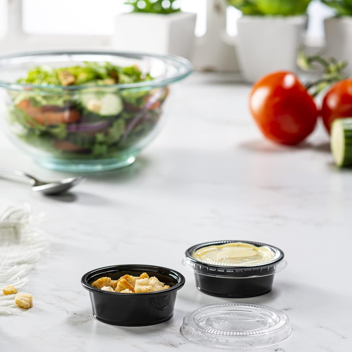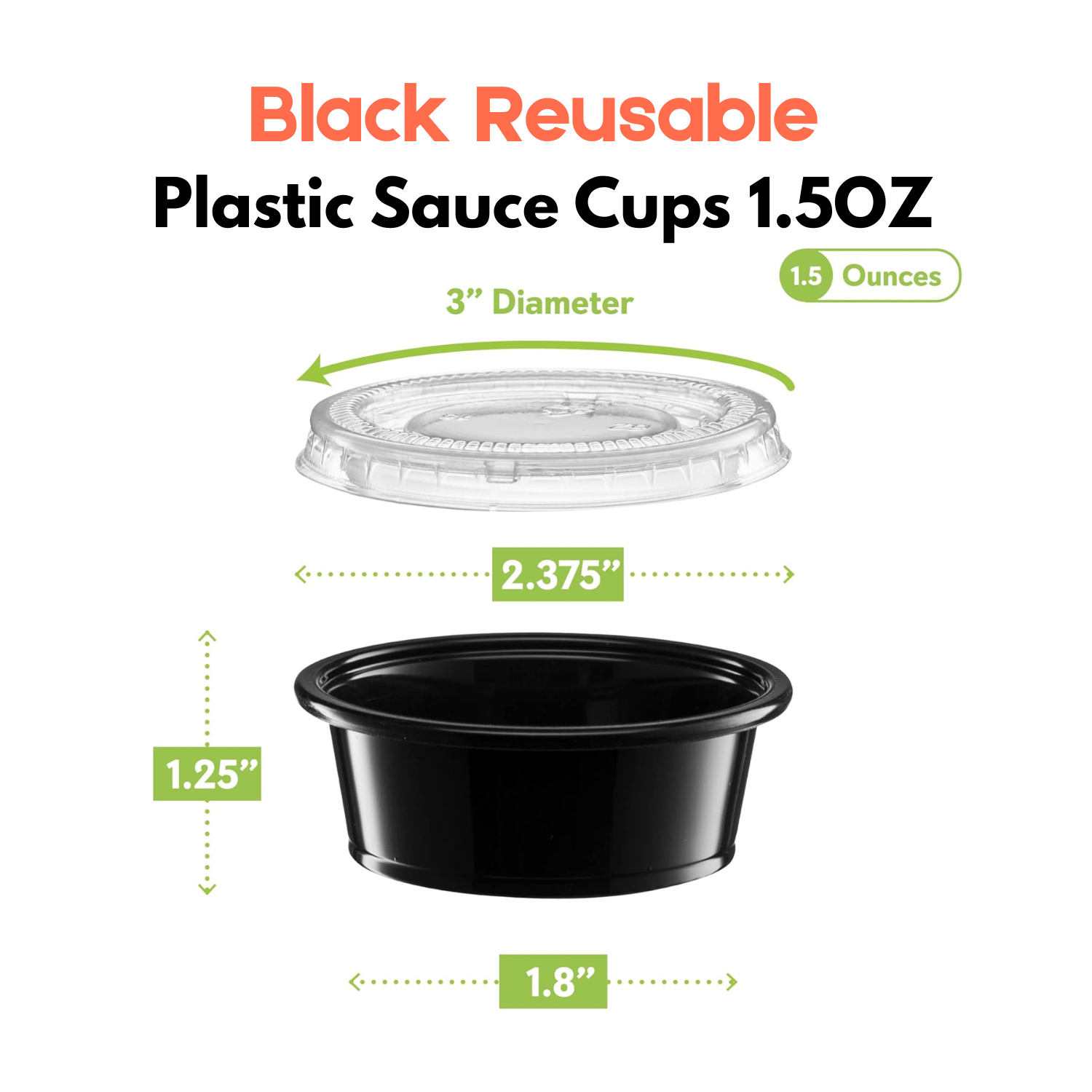 BLACK 1.5OZ SAUCE CUPS AND LIDS x500PCS