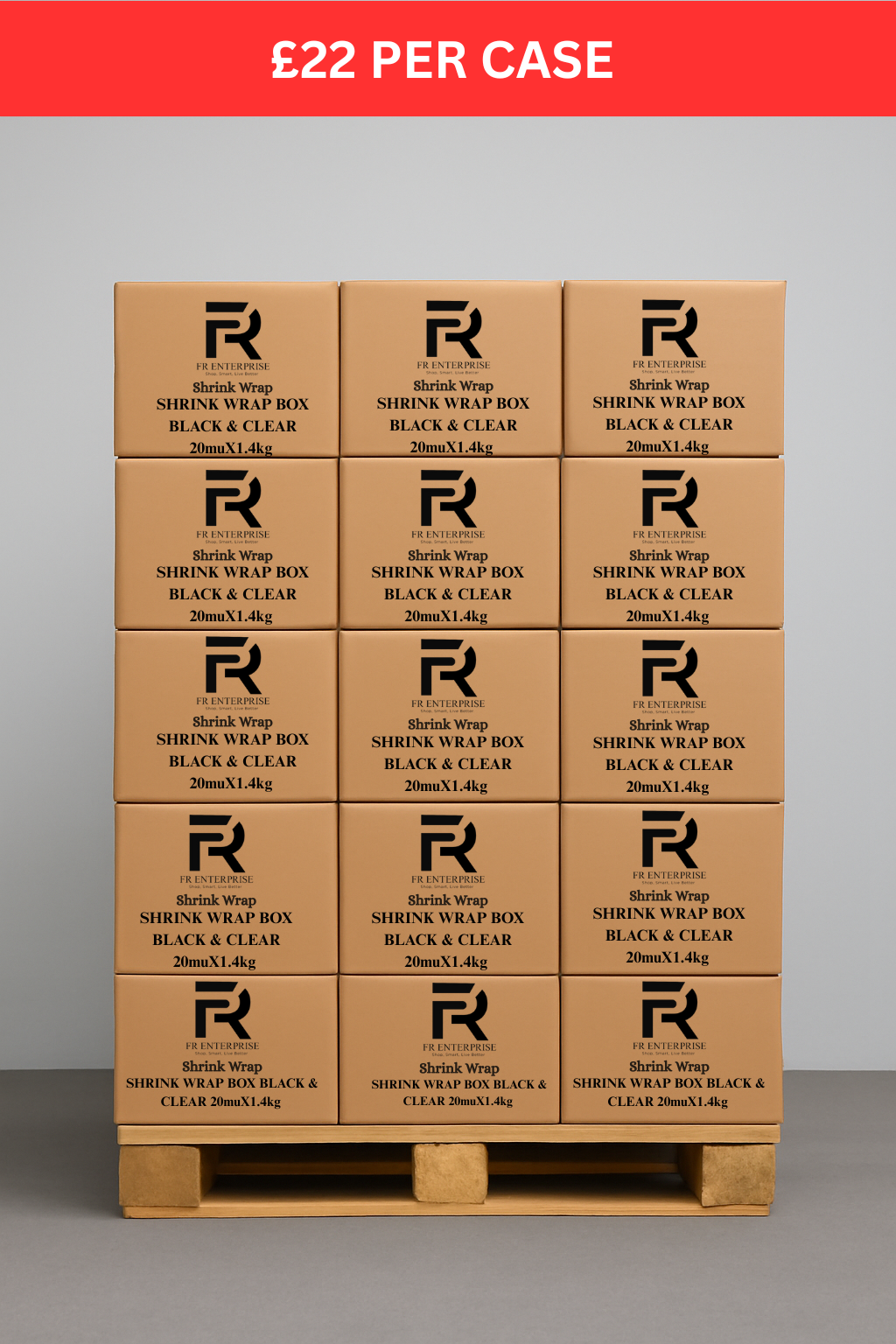 Shrink wrap boxes 20mu x 1.4kg come in 6 pieces per pack and 60 cases. Strong and perfect for packing and protecting items.